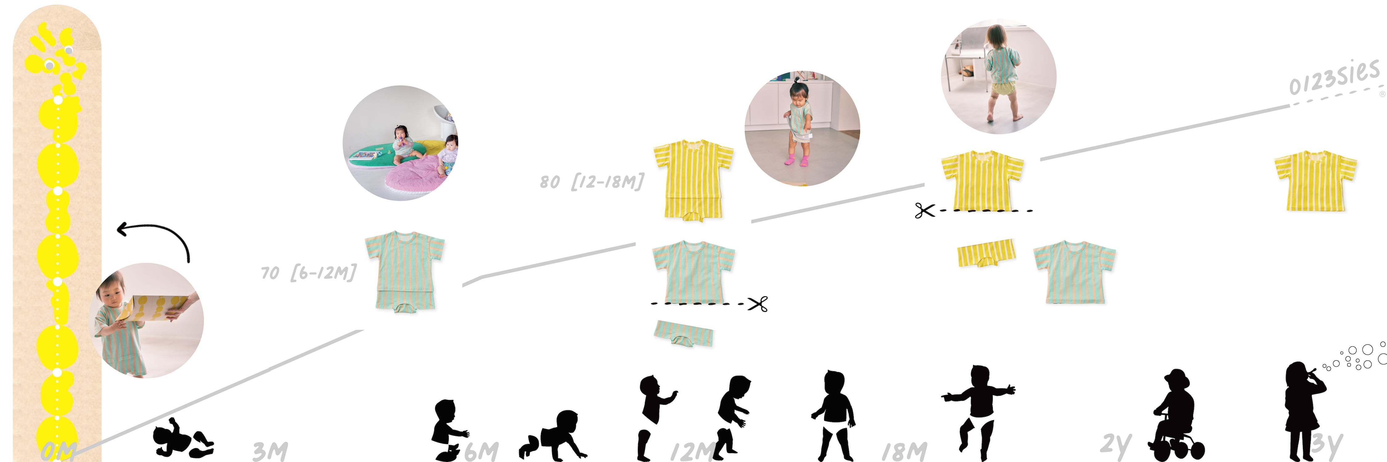 ハサミでTシャツにしたり、サイズ調整したり、最長2年着られるベビー服。
