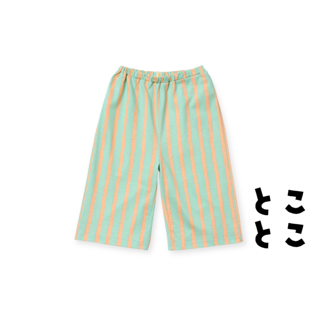 着まわしやすい柄ボトム ショートパンツ ストライプス ライムグリーン×ピーチ【こどもの日・七五三】オーガニックコットン ショーツ きりん