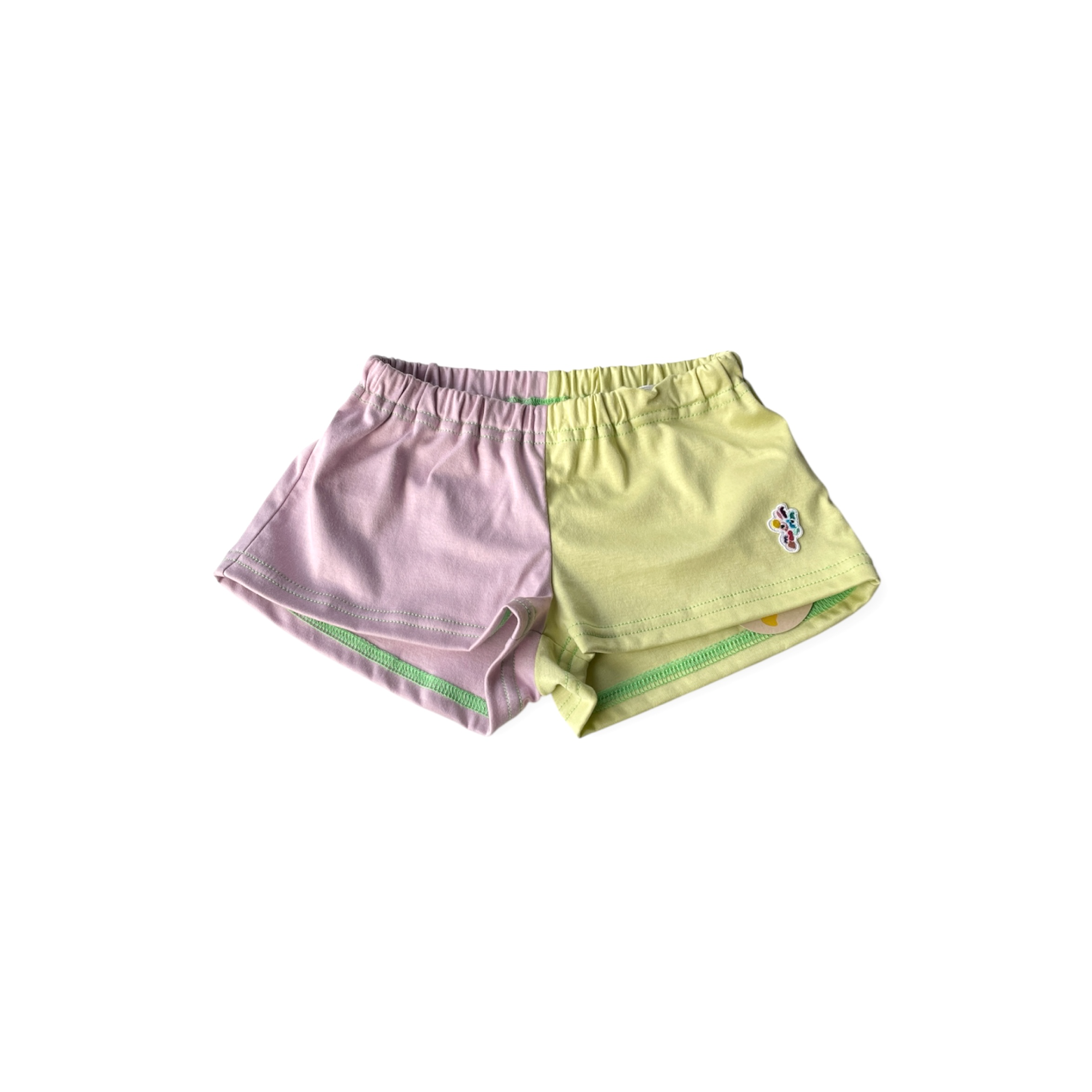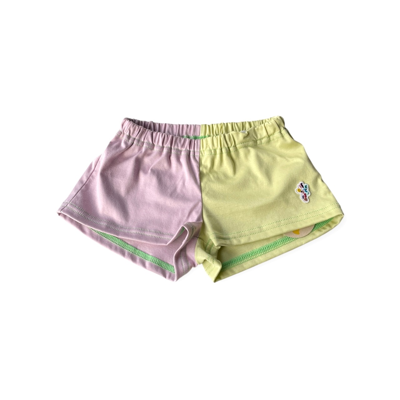 履かせるだけで、おしゃれベビー。ショートパンツ ライラック×ジェントルイエロー【エクステンデッドシリーズ】オーガニックコットン こども服 ショーツ