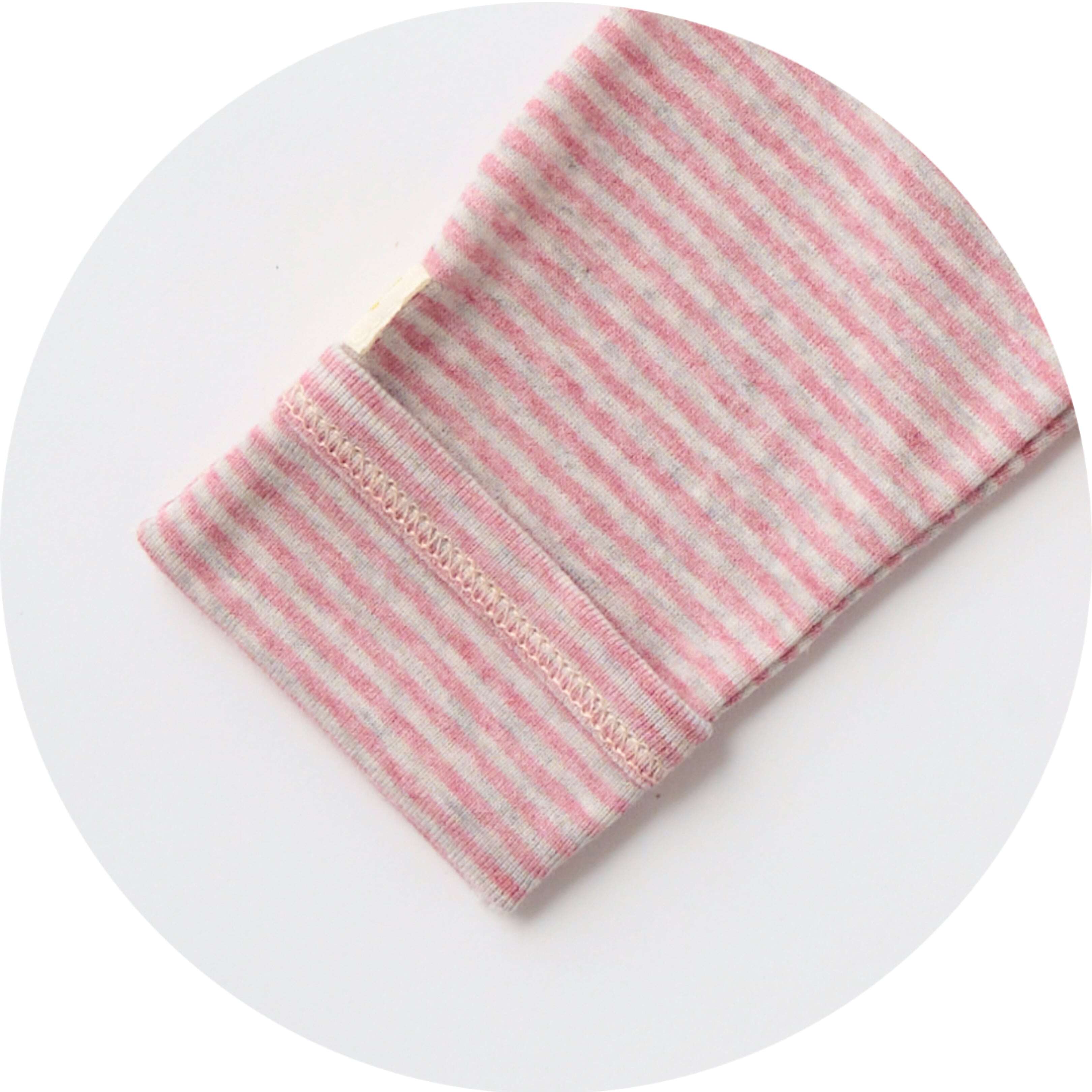 やわらかく、ほどよい伸縮性のある生地。赤ちゃんの動きをさまたげず、よく伸びてフィットするので、お着替えしやすく快適な着心地が続きます。