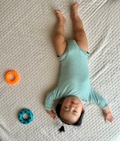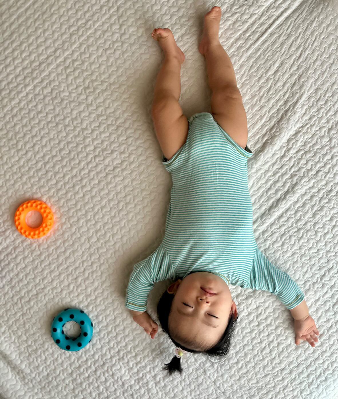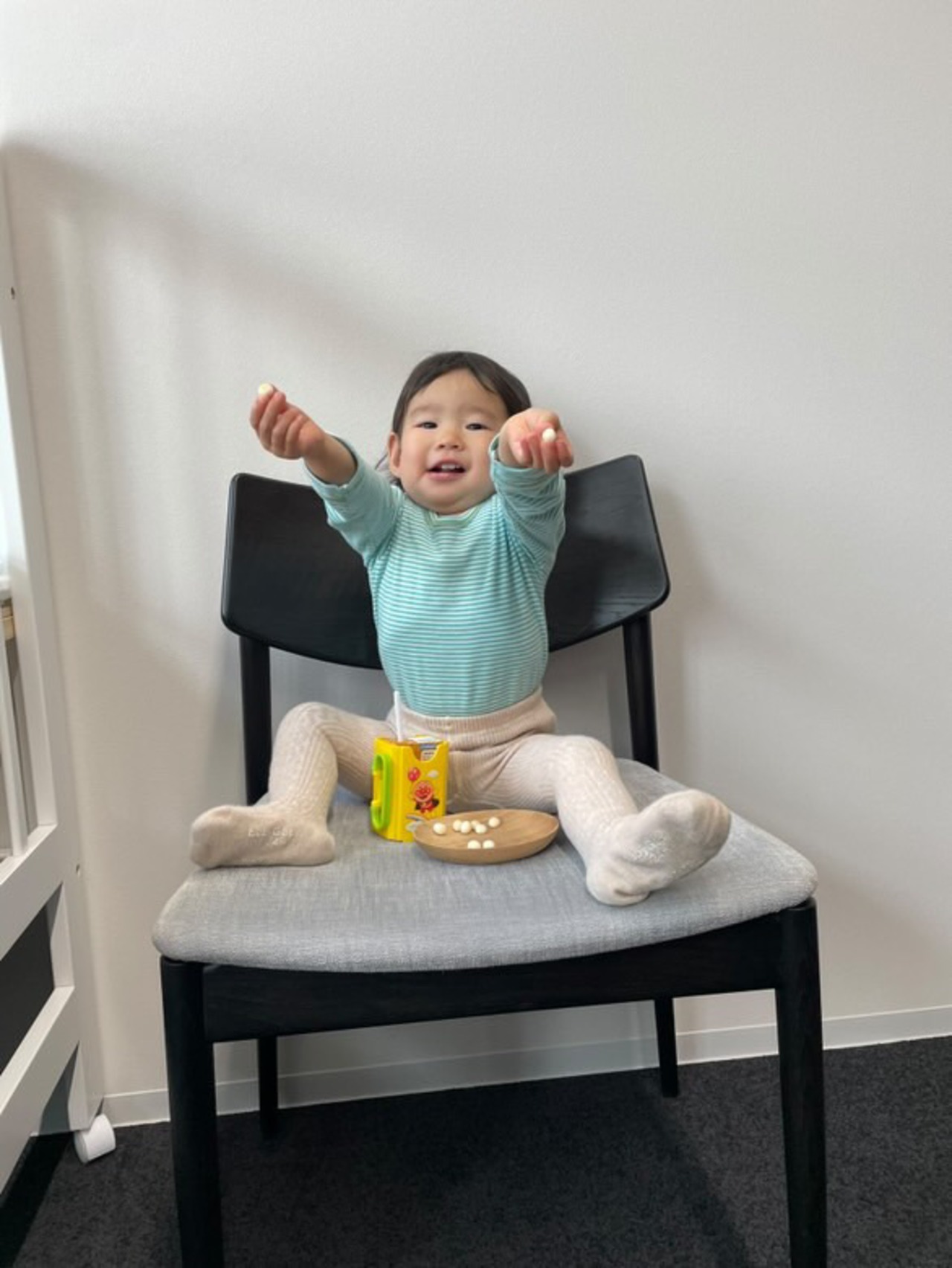 ママの顔がすぐに見えるから、お着替え中もニコニコご機嫌さん。
