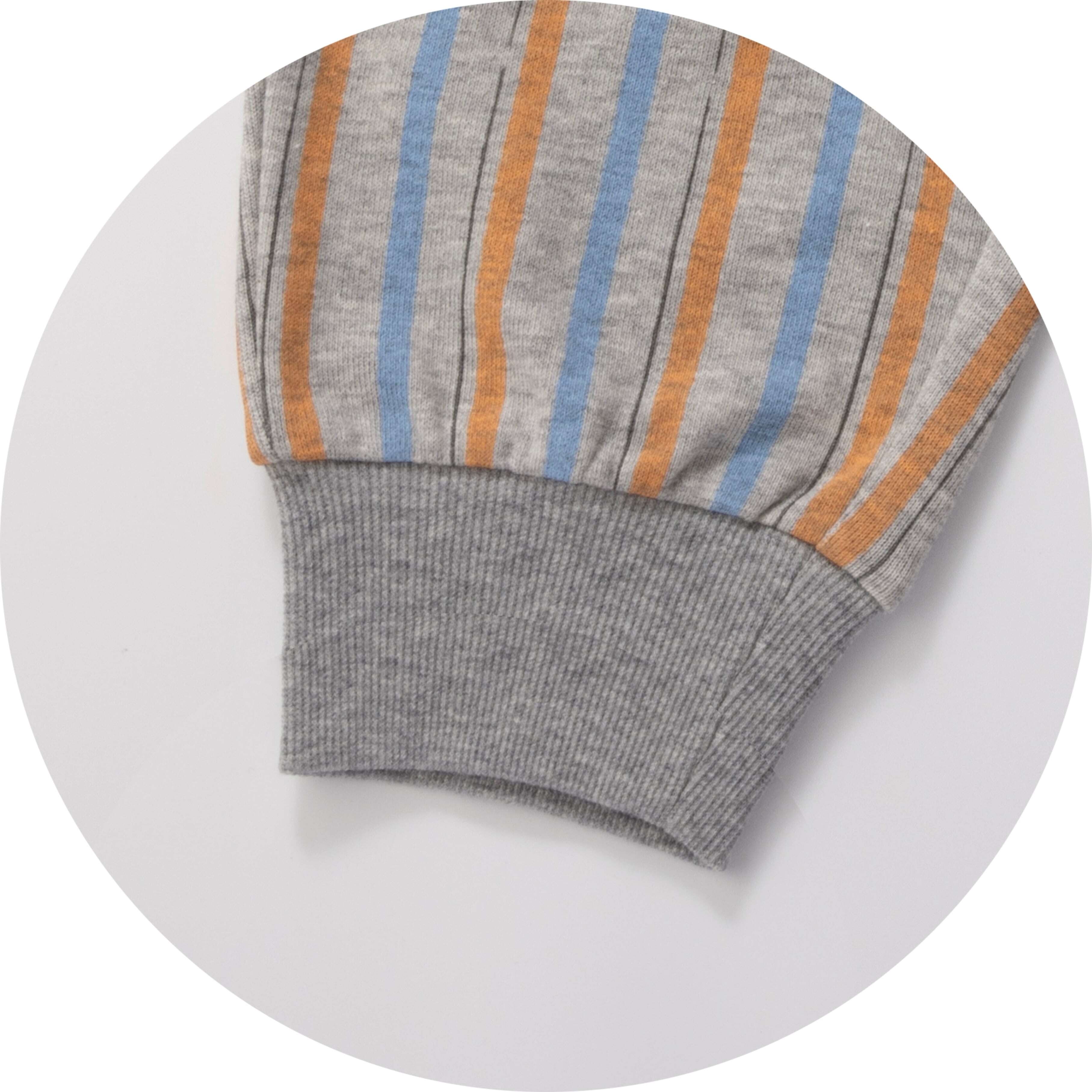 スウェット生地よりも薄手で、表面はなめらか、裏面はループ状になった柔らかい生地。軽くて通気性がよく、程よい伸縮性があるので、赤ちゃんの動きを妨げず快適な着心地が続きます。肌寒い季節の羽織りや、春秋のちょうどいい気温にぴったりの素材です。