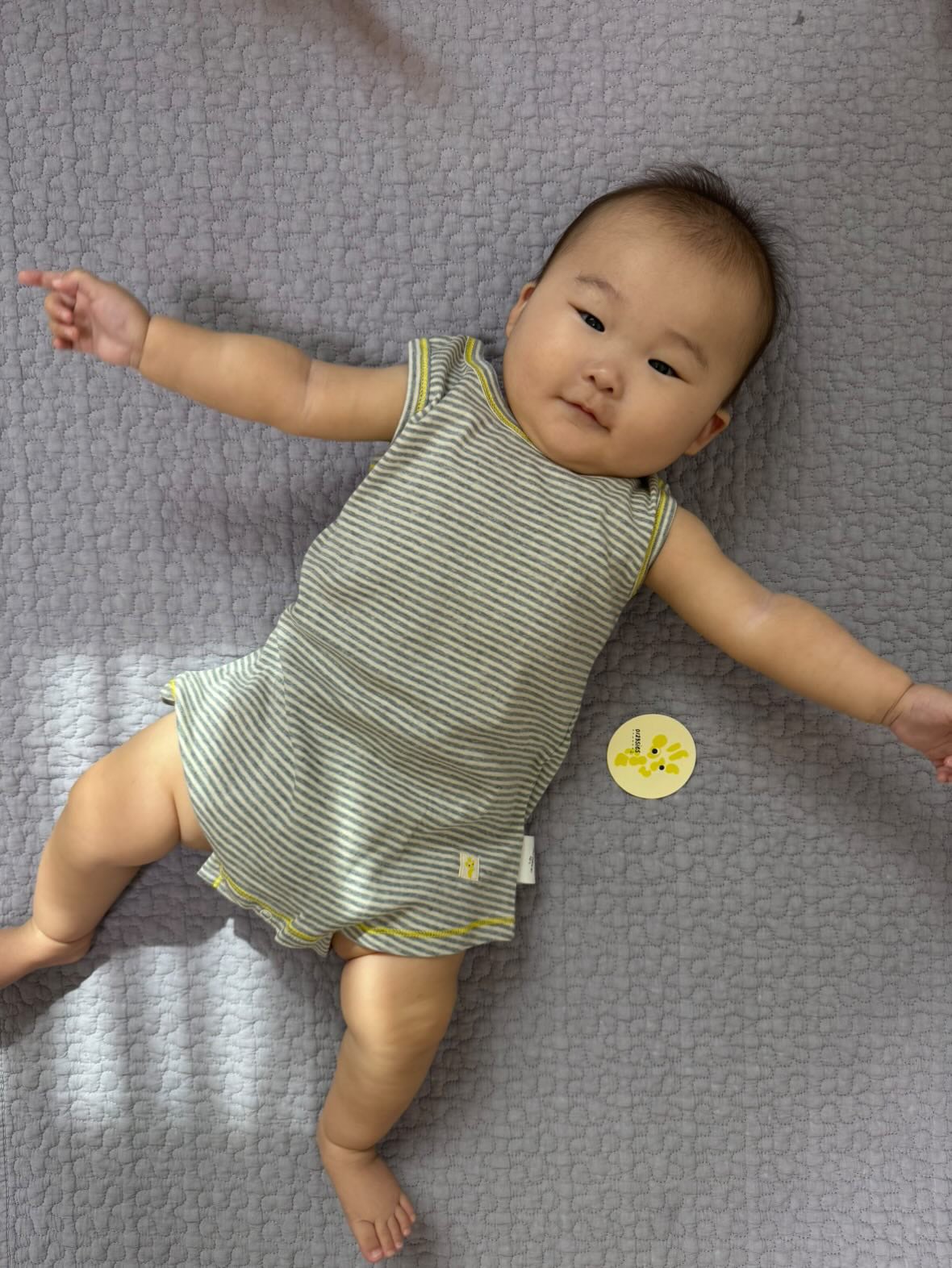 <サイズ70> SAMPLE SALE ノースリーブワンジー ダスティグレー×クレオイエロー【サイズ 調節できるシリーズ】オーガニックコットン ベビー肌着